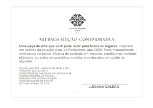 A primeira Art Bag  é inspirada em vestido da coleção  Asas de Borboletas, ano 2006.